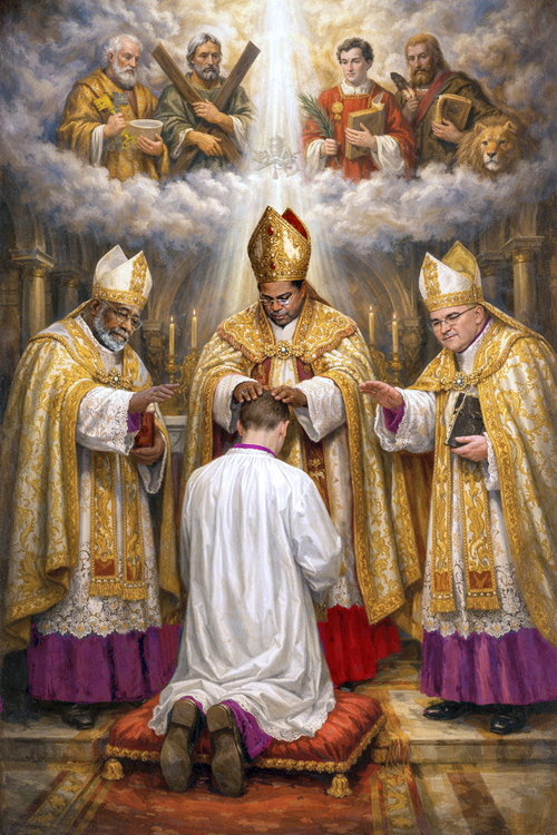 The Episcopal Consecration of Pope Radislav I of Rome-Ruthenia This commemorative work depicts the episcopal consecration of Pope Radislav I, as the four